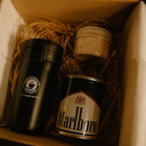 این باکس هدیه مردانه ترکیبی از کاربرد و استایل است. شامل تراول ماگ دوقفله PM ۳۸۰ میل، جا سیگاری مدل مارلبرو مشکی و جار پودر کافی میکس ۱۰۰ گرمی است.
