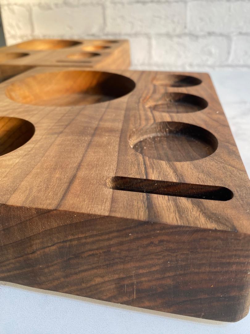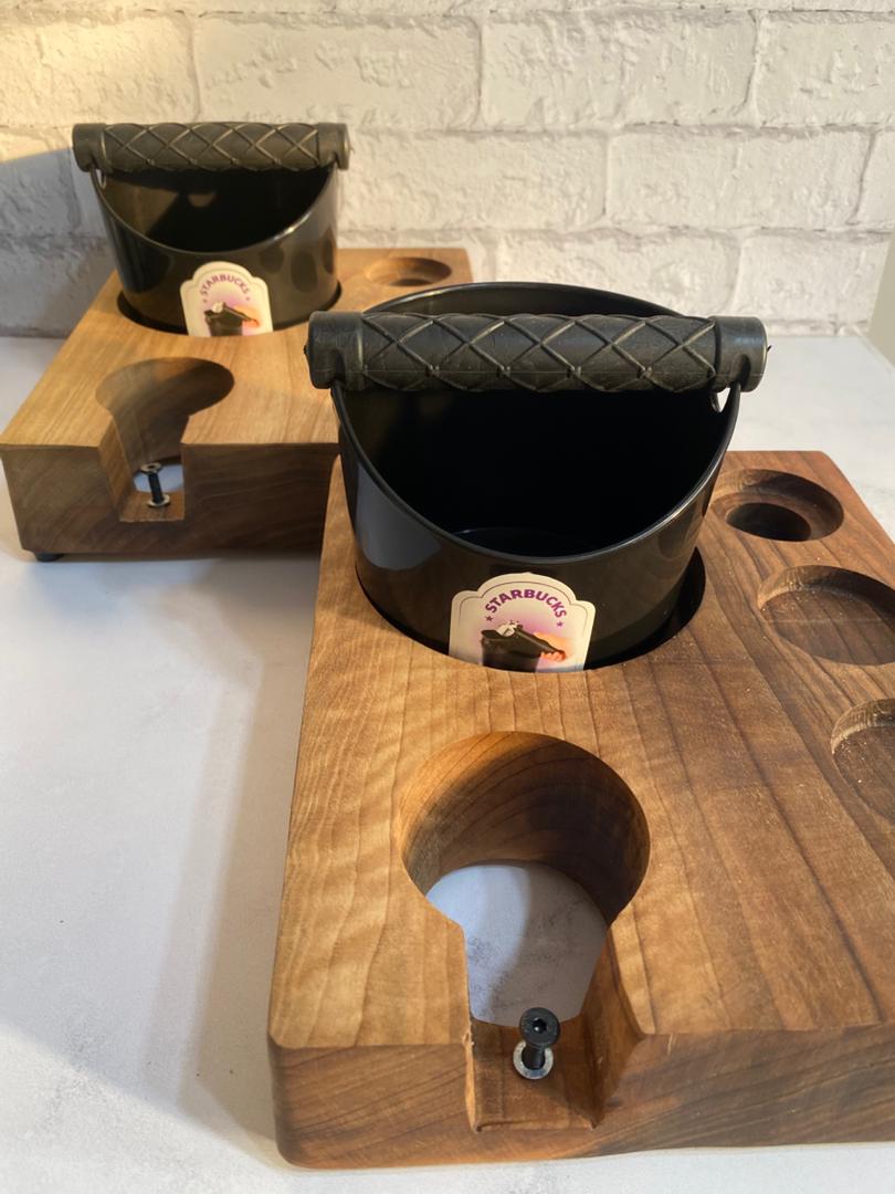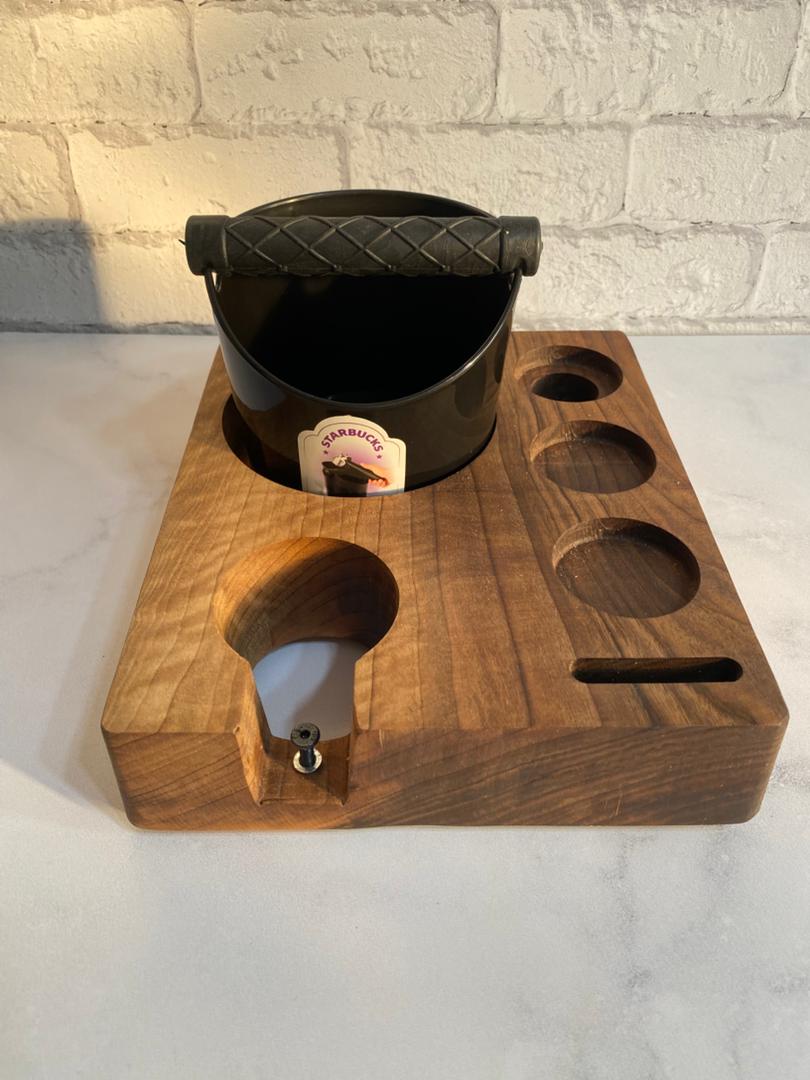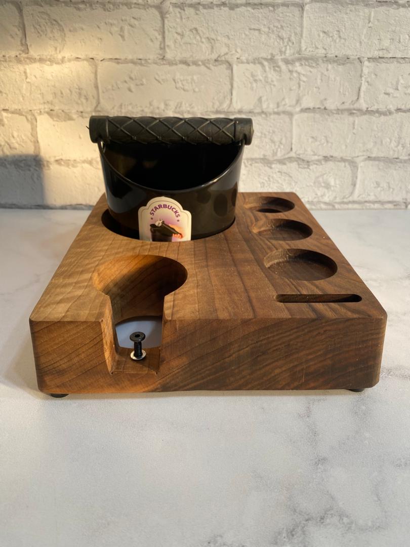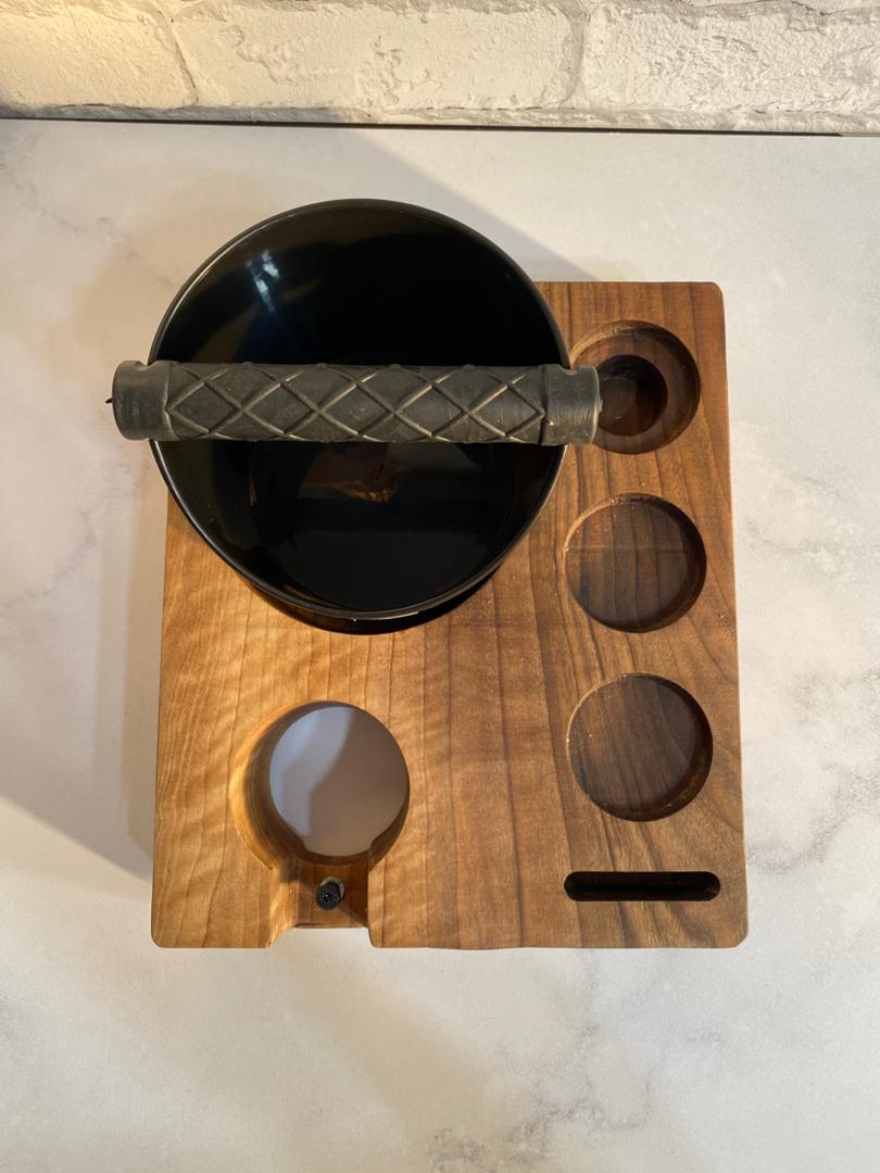 اگر به دنبال یک استند کامل، سنگین، مقاوم و لوکس هستید که علاوه بر نظمدهی ابزارها، امکان تخلیه آسان پَک قهوه را نیز فراهم کند، این مدل چوب گردو به همراه ناک باکس، انتخابی ایدهآل برای یک میز باریستای حرفهای است.