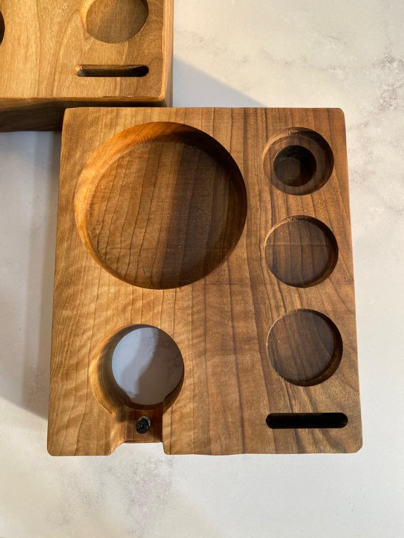 استند پرتافیلتر چوبی به همراه مینی ناک باکس ساخته شده از چوب طبیعی گردو، یک انتخاب حرفهای و کامل برای باریستاها و علاقهمندان جدی قهوه است. این استند با طراحی کاربردی، تمامی ابزارهای اصلی قهوهسازی را در یک مجموعه منظم، زیبا و مقاوم در اختیار شما قرار میدهد.