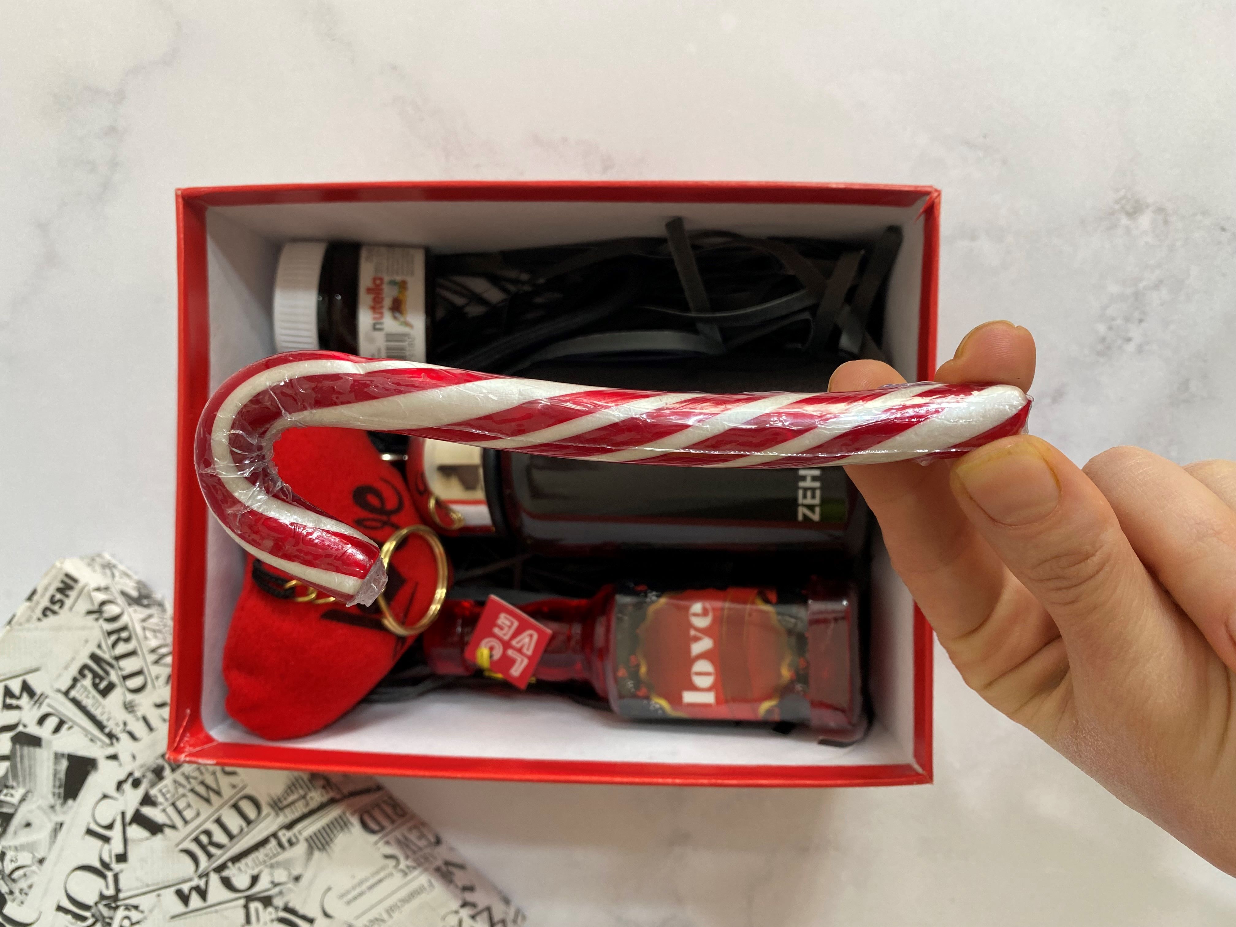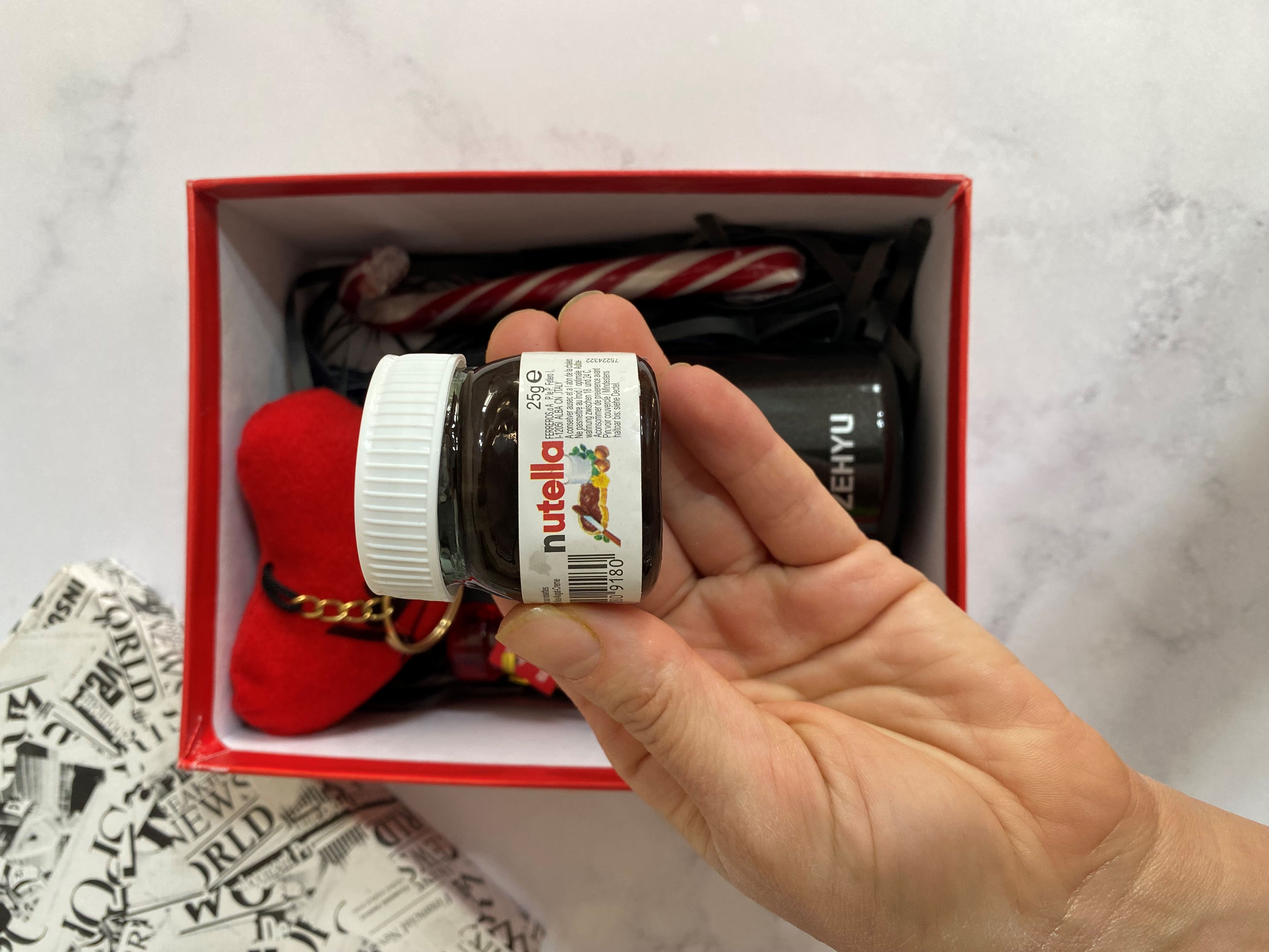 مینی فلاسک بنددار ZEHYU این باکس را به یک هدیه کاربردی روزمره تبدیل کرده است؛ مناسب محل کار، دانشگاه یا سفر. در کنار آن، خوراکیهای دوستداشتنی مثل نوتلا و اسمارتیز، حالوهوای شیرین و شاد ولنتاین را کامل میکنند.